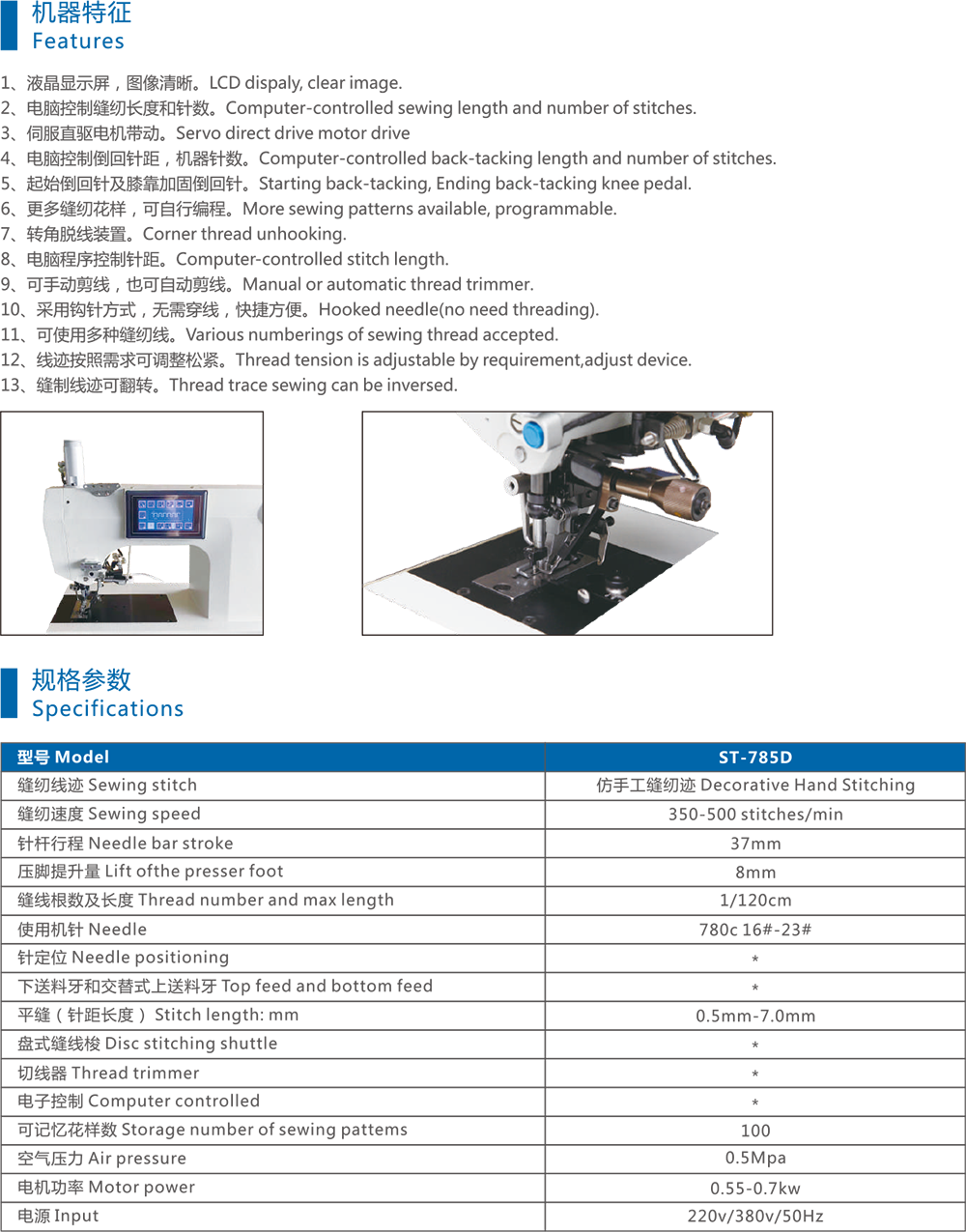 本产品主要针对于服装仿手工线迹缝制,应用于西装,大衣,休闲装,职业装等制品。